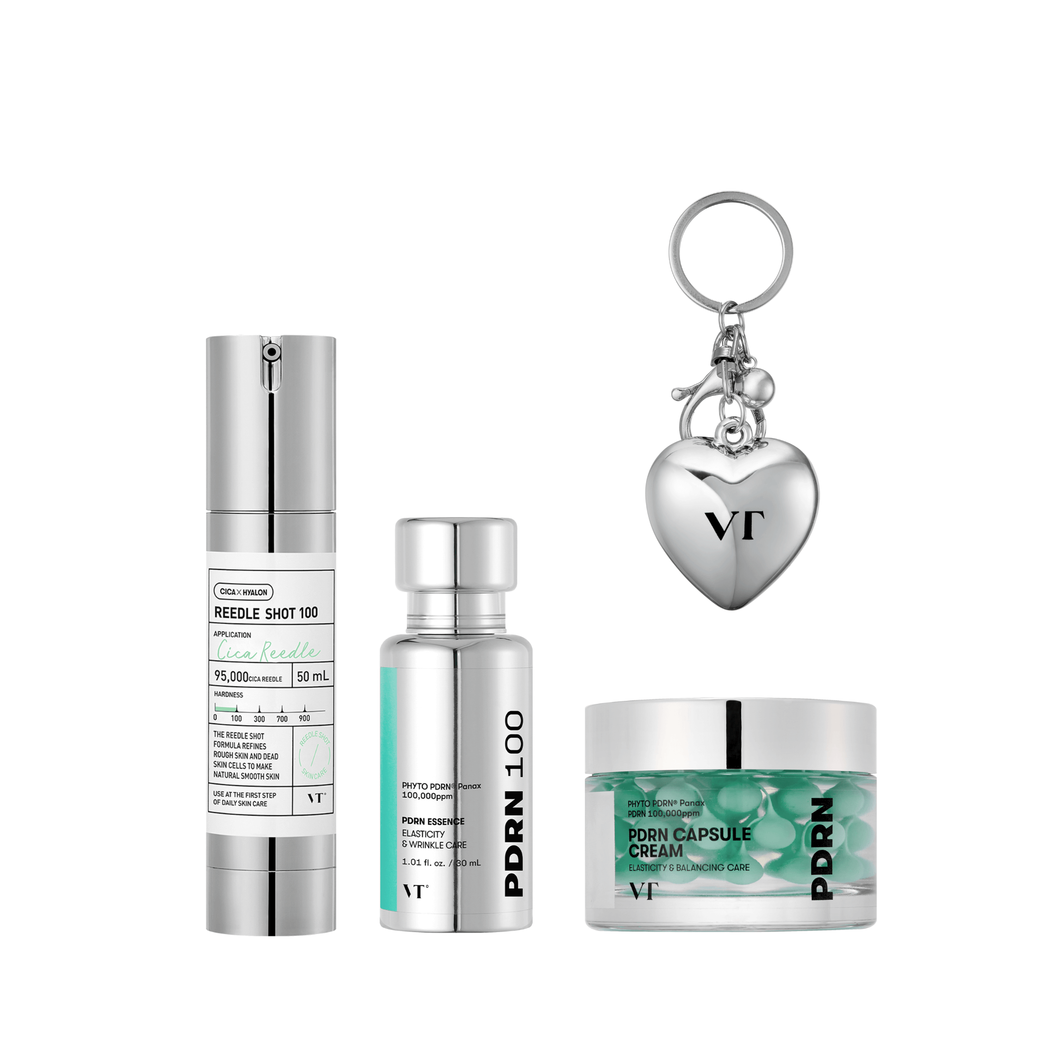 - Top 3 VT bestsellers in one box: REEEDLE SHOT™ 100, PDRN Essence 100, and PDRN Capsule Cream 100 are some of VT’s most-loved formulas for visible care of texture, elasticity, and moisture.
