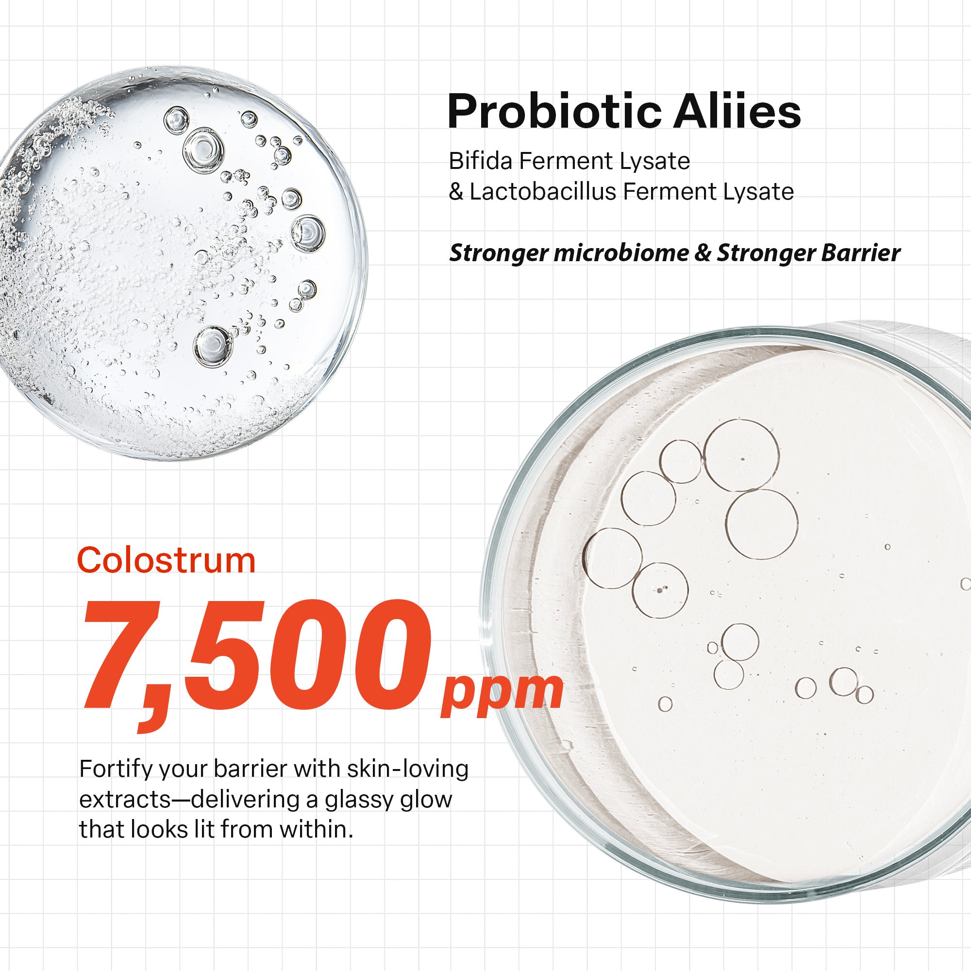 Water, Propanediol, Bifida Ferment Lysate, Lactobacillus Ferment Lysate, Dipropylene Glycol, Pentylene Glycol, Butylene Glycol, Lactococcus Ferment Lysate, Pichia Ferment Lysate Filtrate, Saccharomyces Ferment Lysate Filtrate, 1,2-Hexanediol, Betaine, Colostrum, Panthenol, Chlorella Vulgaris Extract, Glucose, Glycerin, Fructooligosaccharides, Fructose, Xylitol, Ethylhexylglycerin, Diphenyl Dimethicone, Adenosine, Triethylhexanoin, Sodium Citrate, Sodium Phytate, Citric Acid, Hydrogenated Lecithin, Cynanchum Atratum Extract, Beta-Glucan, Althaea Rosea Flower Extract, Hyaluronic Acid, Milk Lipids, Tocopherol, Magnesium Chloride, Tetradecyl Aminobutyroylvalylaminobutyric Urea Trifluoroacetate